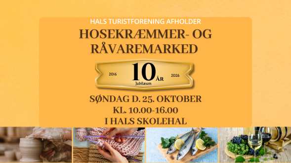 Du inviteres hermed til at deltage i Hals Turistforenings Hosekræmmermarked den 25/10-26, som afholdes i Hals Skolehal.